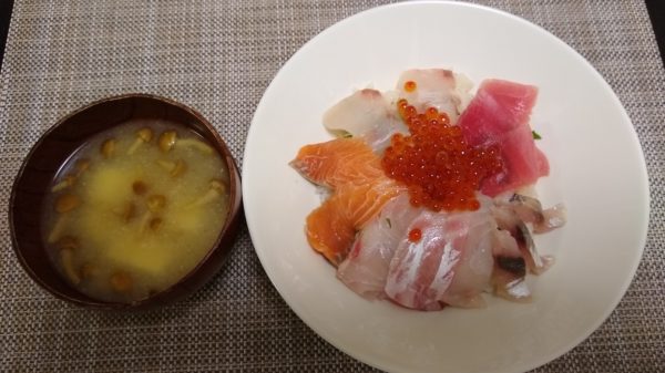 昨日の夜は角上魚類で買ったお刺身で海鮮丼を作りました。