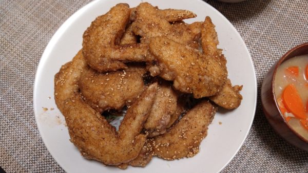で、夕食はたっぷり黒胡椒のスパイシー手羽先を作りました。