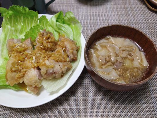 そしてもう一品は餃子の皮を使ったワンタンスープ。